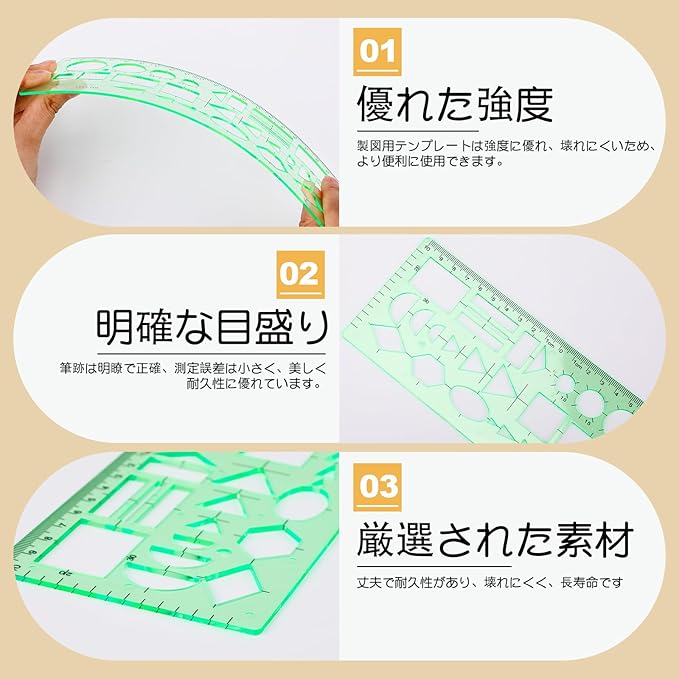 高品質の素材:テンプレート 定規 製図用すべて高品質の素材で作られており、水で洗って繰り返し使用できます。
