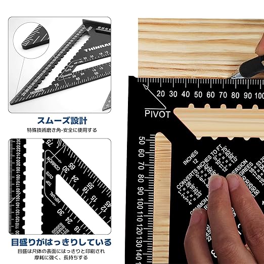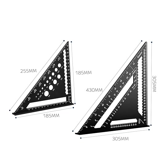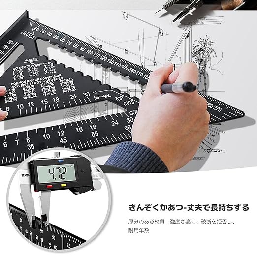 【高品質素材】三角定規ツールはアルミニウム合金を採用し、作りは精巧で、正確な角度、耐落下性、耐摩耗性、強い耐食性、耐久性があり、長期間使用しても曲がりません。レーザーレーザーフォント、ミリメートルの正確で明確。