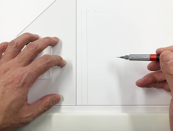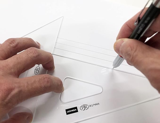 使い勝手のいい3mm厚(ドラフターや平行定規のスケールの厚みと同じ)です。