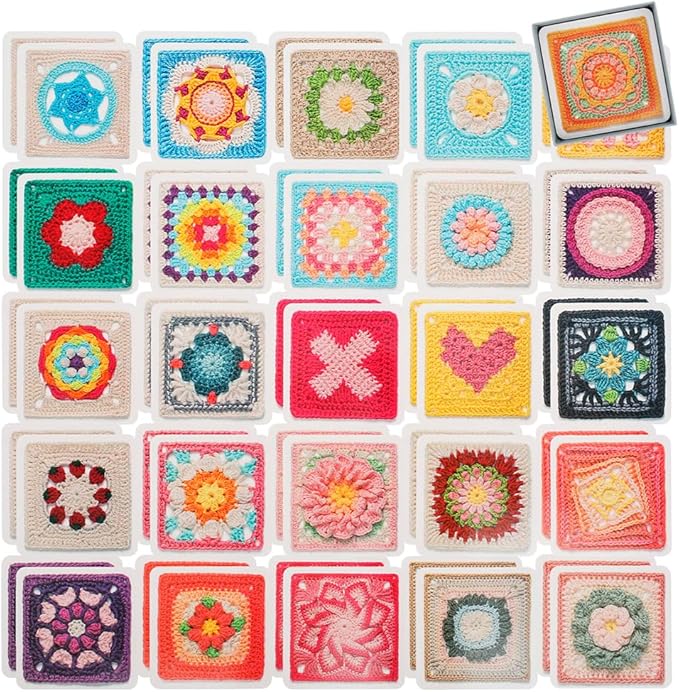 YAARUJEE グラニースクエアカード 50枚セット 編み物キット 初心者向け かぎ針編みパターンブック 手作りガイド(カード・説明書のみ、毛糸・編み針含まず)