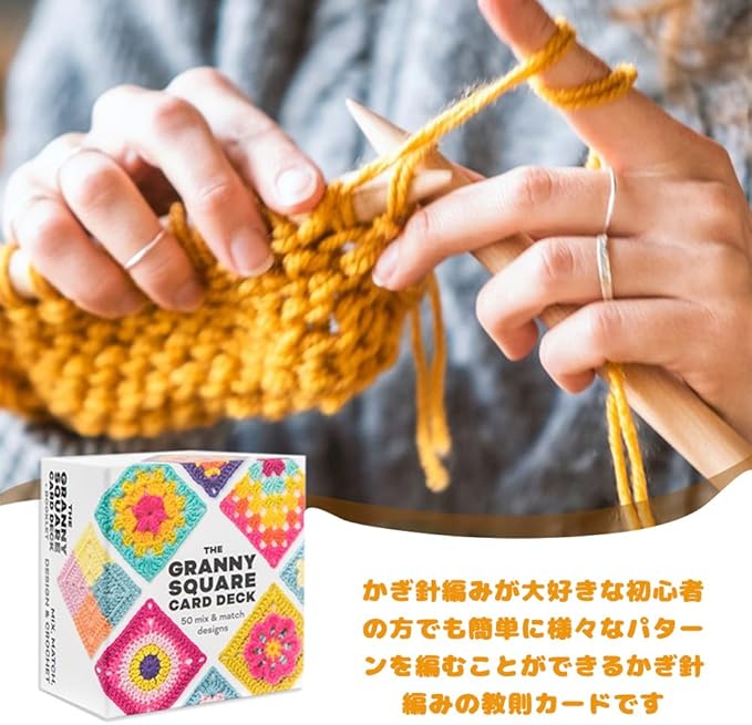 1.【美しいグラニースクエアデザイン】各カードには、完成したグラニースクエアのカラー写真が掲載されており、自由に並べたり組み合わせたりして、自分だけのデザインを作ることができます。カードを裏返すと、詳細なかぎ針編みの図と接続方法の説明があり、初心者でも簡単に編み始められます。 2.【初心者向けの編み物キット】付属の小冊子には、かぎ針編みの図の読み方を段階的に解説し、5つの編み図と実際の編み方を並べて説明しています。さらに、毛糸や編み針の選び方、グラニースクエアをつなげる2つの方法、色の配置や組み合わせのコツなど、初心者でも成功しやすい内容になっています。 3.【使いやすい正方形カードデッキ】仕上げのセクションでは、グラニースクエアをつなげる「ホイップステッチ」や、シンプルできれいなかぎ針編みの縁取りを施す方法を紹介。付属のサンプルブランケットを参考に、さまざまな形や技法を組み合わせて美しい作品を作ることができます。 4.【持ち運びに便利でプレゼントにも最適】コンパクトなカードセットなので持ち運びに便利で、いつでもどこでも編み物を楽しめます。初心者へのプレゼントにもぴったりで、すぐに始められる実用的なギフトとして喜ばれます。 5.【セット内容と注意事項】セットには 50枚の編み物カード と 1冊の説明書 が含まれています。(⚠ 毛糸、かぎ針は含まれておりません。)自分好みの毛糸や針を用意して、おしゃれな手作り作品を楽しんでください。
