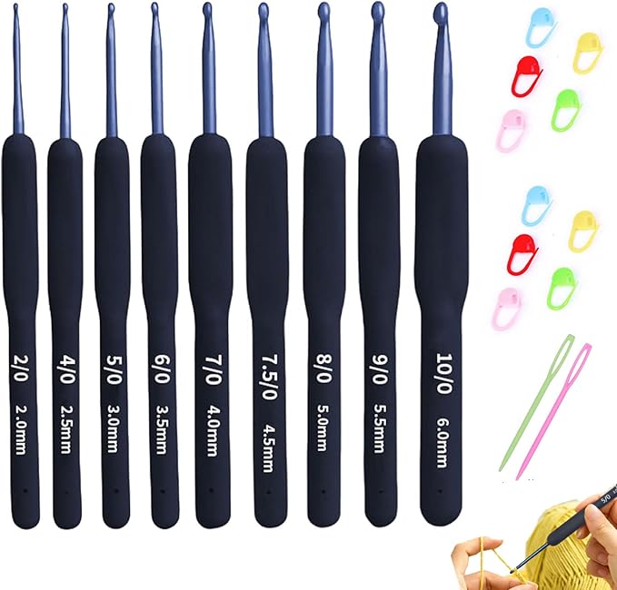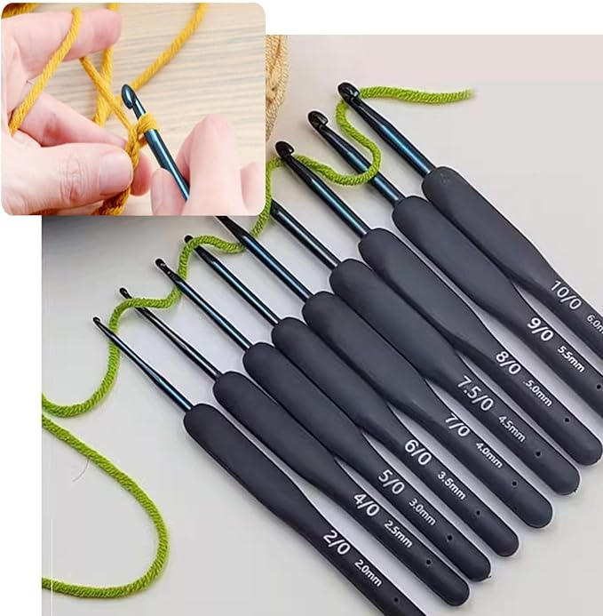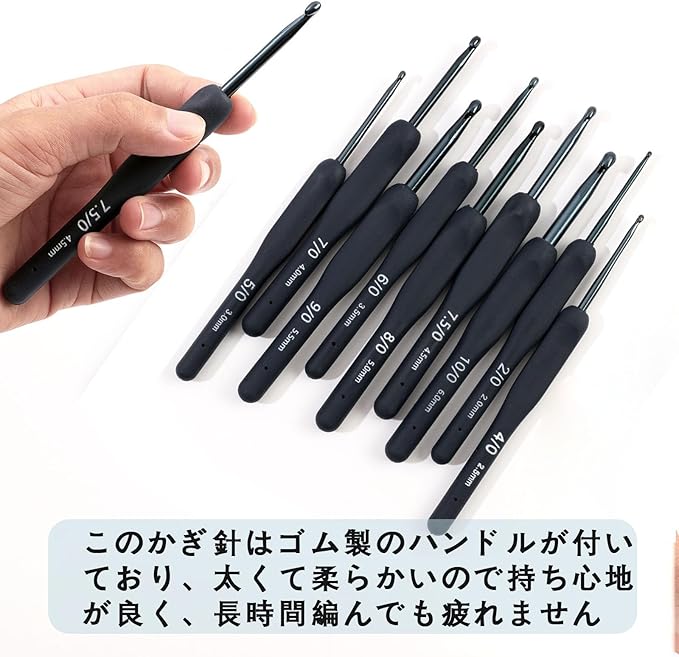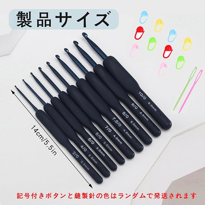 【細やかにデザインされたかぎ針】セットには、2.0mm、4.0mm、5.0mm、6.0mm、7.0mm、7.5mm、8.0mm、9.0mm、10.0mmの9種類のサイズがあります。各ハンドルにはサイズ表示があり、必要なかぎ針のサイズを選びやすくなっています。 滑らかなかぎ針は、毛糸を引き出しやすく、毛糸の抜けを防ぎ、よりスムーズに編むことができます。