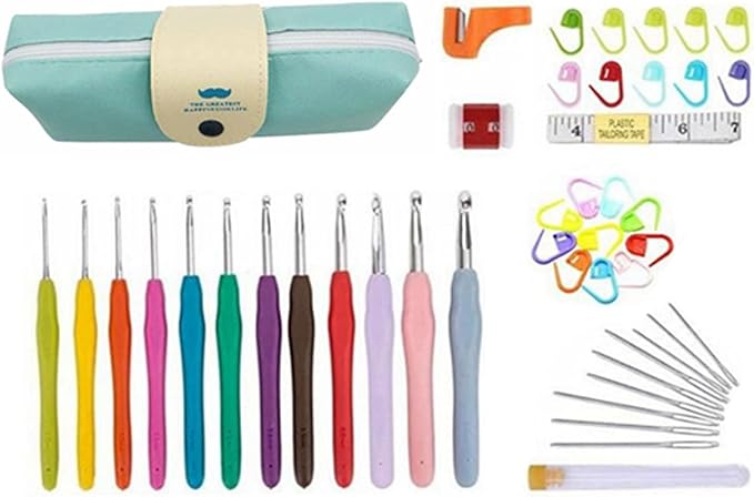 【携帯用実用編みセット】このかぎ針編みセットには 12 本の虹熱可塑性ゴムソフト柄かぎ針が含まれており、19*6*8 cm の緑の収納バッグを組み合わせており、持ち運びに便利です。道具がそろっていて、操作が簡単で、初心者でもベテランでも最適です