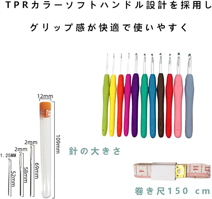 【快適で効率的な編成装備】熱可塑性ゴムカラーソフトハンドル設計を採用し、グリップ感が快適で使いやすく、12 本の鉤針は異なる編成ニーズを満たす。酸化フックは防錆性があり、小型カウンタを組み合わせて、ストラップ、バッグなどの編み物の創作をより効率的にする