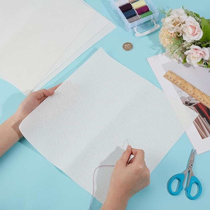 BENECREAT 4枚 クロスステッチ布 14カウント 30x30cm ビニールキャンバス 刺しゅう布 刺繍布 メッシュプラスチックキャンバスシート ハンドメイド DIY用刺繍縫製用品 ホワイト
