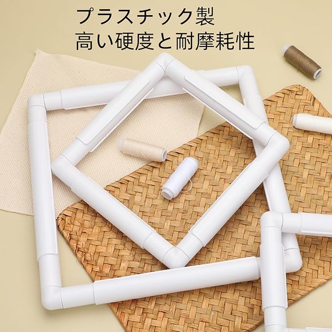 【耐久性のあるポリプロピレン素材】この四角形のプラスチック刺繍フレームは、高品質のポリプロピレン管材とクリップを使用して作られており、素材は堅牢で耐久性があり、頻繁な使用や操作にも耐えられ、長寿命です。刺繍などの手芸創作に安定したサポートを提供します。