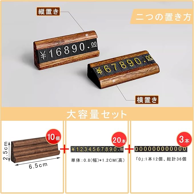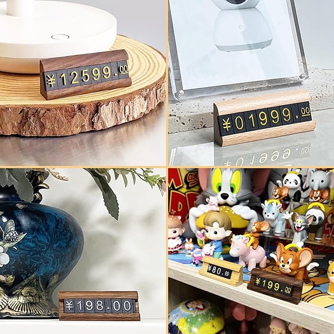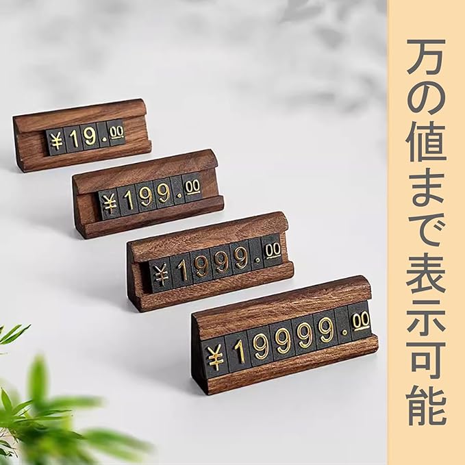 【製品詳細】底座:黒胡桃材/ブナ材、6.5cm (幅) 2.5cm(高)。プライス数字プレート:ABSプラスチック、単体:0.8(幅)*1.2CM(高)。