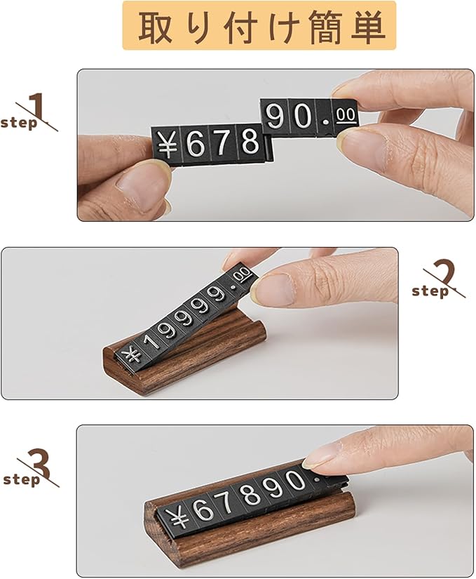 【万の値まで表示可能 】 面倒な操作は不要で、数字プレートを縦にスライドさせて数字を組み替えるだけでご希望の 価 格 表示を自由に変更でき、万単位まで表示できます。