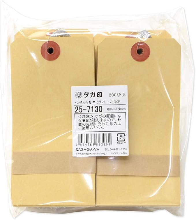 ササガワ 店舗用品 パック入りクラフト荷札 大 一穴 針金付 200枚 25-7130