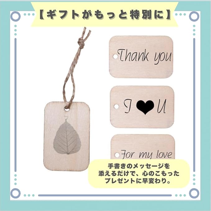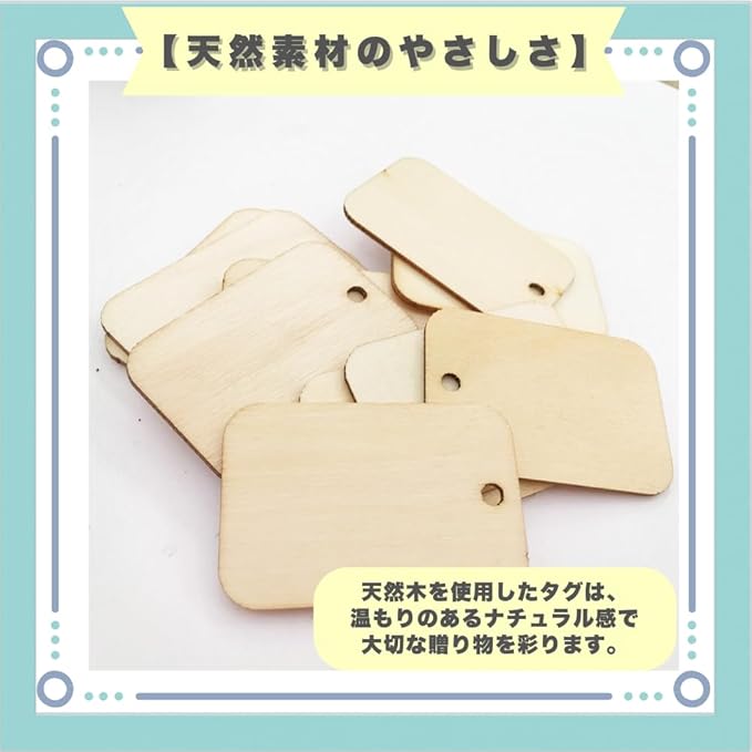【天然素材のやさしさ】天然木を使用したタグは、温もりのあるナチュラル感で大切な贈り物を彩ります。