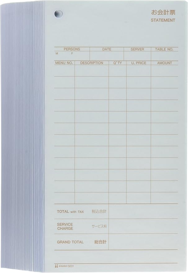 ヒサゴ お会計票3枚複写 税サービス付(200セット入) 3231