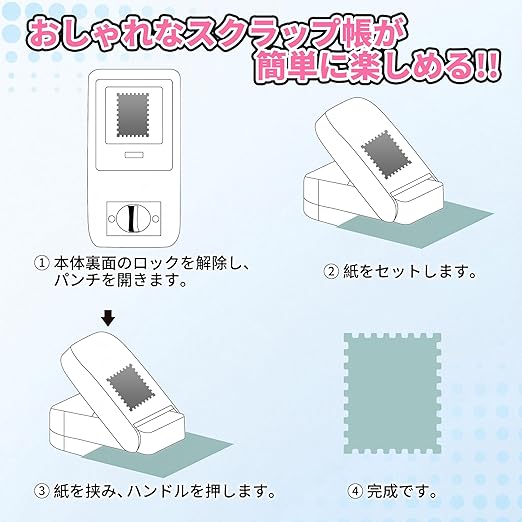 ✅【注意点・用途】❶スポンジ紙、硬質段ボール、不織布、極端に厚いまたは硬い素材には使用しないでください。刃の損傷や故障の原因となります。❷サイズを超える硬い紙カードを使用すると紙詰まりを起こす可能性があります。紙詰まり時は、工具でスプリングを元の位置に戻せば継続使用可能です。❸レバーに強い衝撃を与えると破損する恐れがあります。用途:スクラップブック、カードメイキング、ペーパークラフトを始め、グリーティングカードやギフトタグのデコレーション、ラッピング、アルバムづくりまで、あらゆる紙工作を彩ります。保育教材やお子様のDIYアート、季節のイベント・記念日の装飾にもおすすめ。アイデア次第で、さまざまなアレンジが楽しめる、クリエイティブなクラフトパンチです。