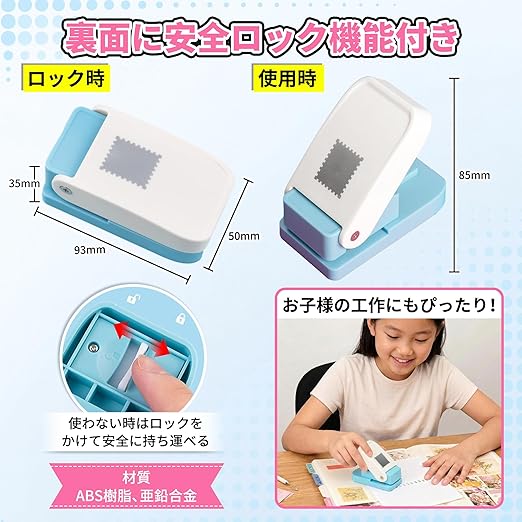 ✅【安全ロック機能付き】裏面に安全ロック機能が付いており、使用しない時はロックをかけて安全に収納・持ち運びができます。小さなお子様も簡単に使えるので工作にぴったり!簡単に綺麗に、軽い力で型抜きできる紙用パンチです。材質:ABS樹脂、亜鉛合金。