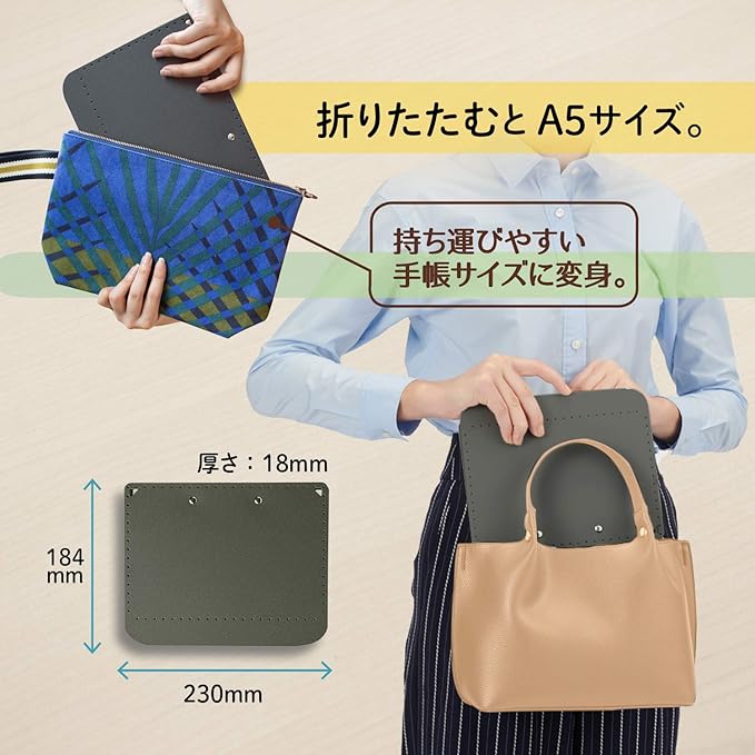 2.折りたたむと手帳(A5)サイズ。トートバッグに入って持ち歩きラクラク。