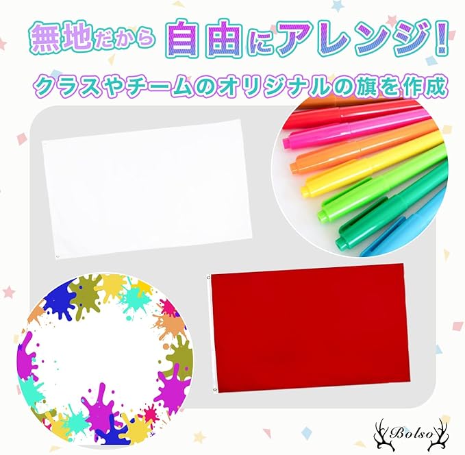 無地だから自由に書き込める!そのままでのご使用はもちろん、ペンや絵の具などで描き込むことでオリジナルの大旗が作成できます!クラスやチームなどのオリジナルの旗を作成することができます!