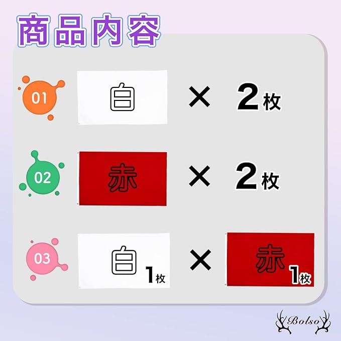 嬉しい3バリエーションをご用意!白2枚、赤2枚、白1枚赤1枚から利用用途に合わせてお選びいただけます!オリジナルの旗製作や紅白対抗の応援旗など、さまざまな使い方が可能です!