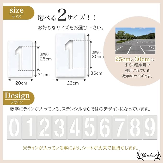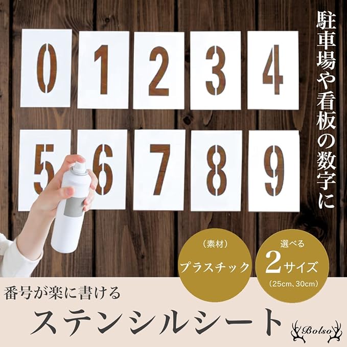 BOLSO 駐車場 番号 線引き ステンシル プレート 白線 ナンバー 数字 ライン シート スプレー 吹きつけ (30cm)