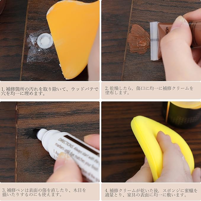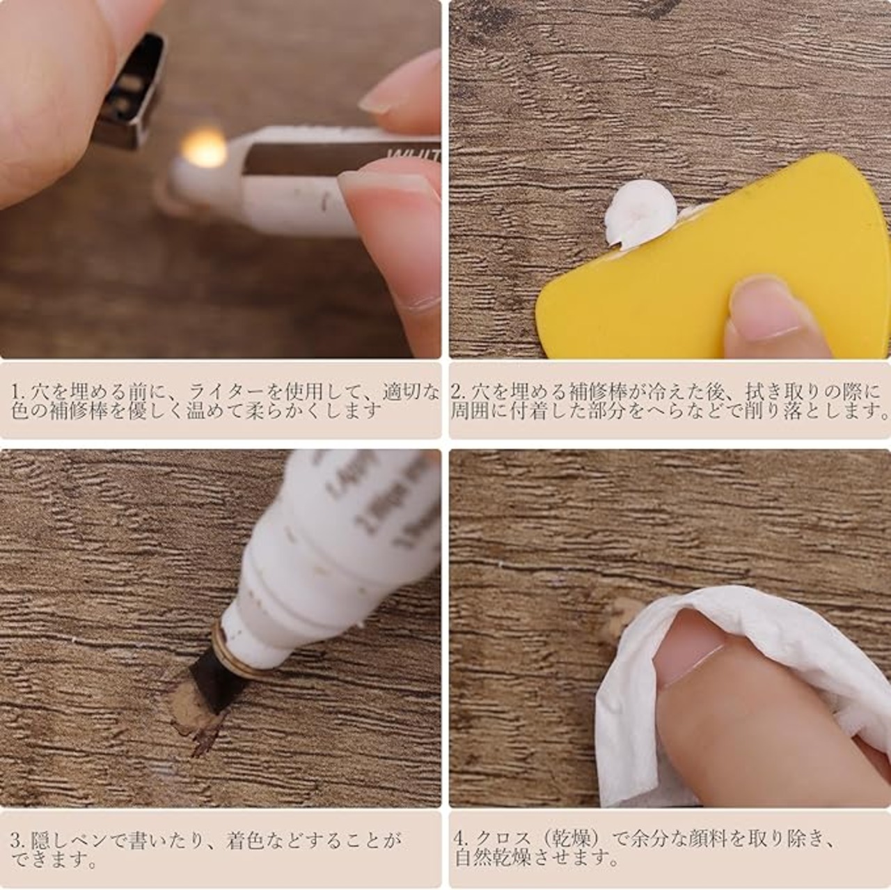 【広い適用範囲】木製の床、木製のドア、家具(キャビネット、椅子、ベッド、クローゼット、本棚、机、木製工芸品など)の傷、ひび割れ、欠け、穴、変色に適用できます。 この木製補修キットを使用して、家具の再仕上げを自分で行うことができます。