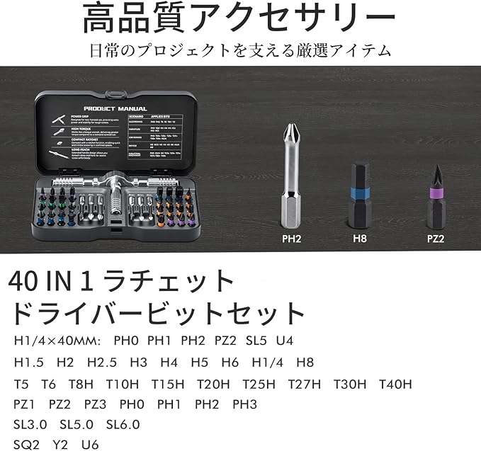高品質素材:このドライバーセットは、S2鋼製のビットを採用しており、非常に高い耐久性と精密な加工精度を実現しています。S2鋼は工具用鋼として優れた特性を持ち、長期間の使用でも摩耗しにくく、信頼性の高い作業が可能です。