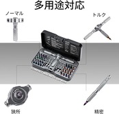組み合わせ式ハンドル:セットには、3個の接続部品とラチェット機構が含まれており、これらを自由に組み合わせることができます。このデザインにより、狭いスペースや特殊な角度での作業がスムーズに行えます。特に、複雑な機器の内部作業や、アクセスが難しい場所での使用に便利です。