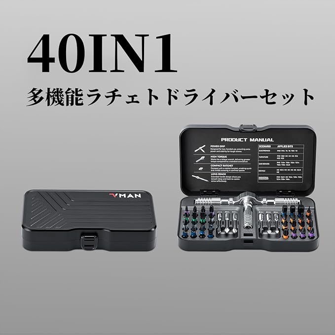 VMAN ラチェットドライバーセット 磁気ドライバーセット 40in1 38点ビット S2鋼 差替式 マグネット式 マイナスドライバー プラスドライバー 工具セット マグネット式 工具キット 磁力交換ビット 家電修理用 レディース