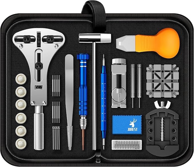 JOREST 腕時計 工具 セット、時計 修理 キット、時計 電池交換 工具、ピン抜き、時計バンド調整、時計 でんち交換、時計 裏 蓋 外し、時計 こじ開け、時計オープナー、時計 蓋 閉め 器、時計 ドライバー、バネ 棒 外し