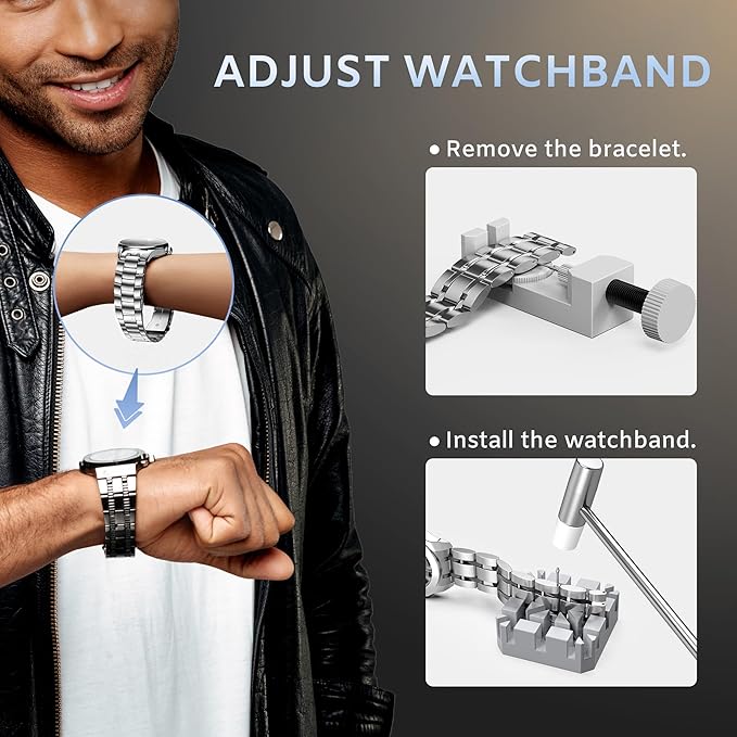 【2025 新時計修理キット】①JORESTの3本爪キャップオープナーは、ハンドルの下にラバースリーブを追加することで、ハンドルとそれに対応するスチール製の歯が実際の操作中にずれたり滑ったりすることが、市販の他の製品よりも少なくなるように改良されている;②新しい時計バンドリムーバー、固体のアップグレードより良い使用; ③新しいパンチ針、よりハードと耐久性。