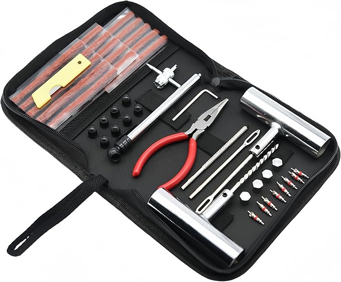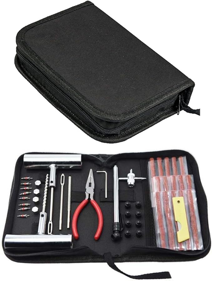 Haverain タイヤ修理ツールキット 収納ケース付き パンク修理キット 車 オートバイ 自転車 応急修理キット ユニバーサル緊急パンクタイヤ修理ツールセット