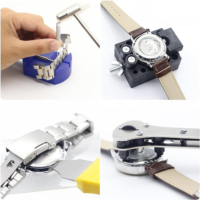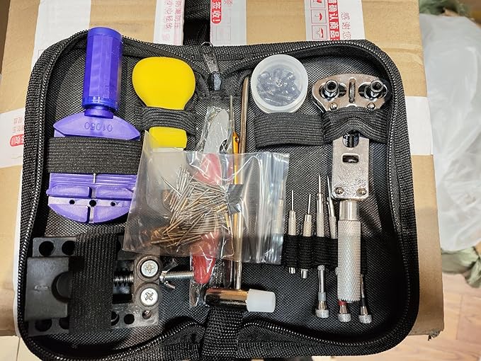 【腕時計の問題は基本解決!】: この147個の時計修理キットには、腕時計修理、ベルト交換やサイズの調整、腕時計の電池交換、腕時計内部の修理などの時に、必要な腕時計工具がすべて揃っています。時計屋さんへ修理を頼まなくても、自分で簡単に行なえます。腕時計修理の工具セットでございます。