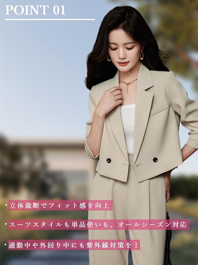 【立体的なカッティング】このスーツセットは立体裁断のデザインで、衣服の形が豊かで、型がより良いです。平面裁断と比較して、より造形と曲線の表現に重点を置いており、衣服が人体工学により適合し、美観度と快適度も高くなっています。