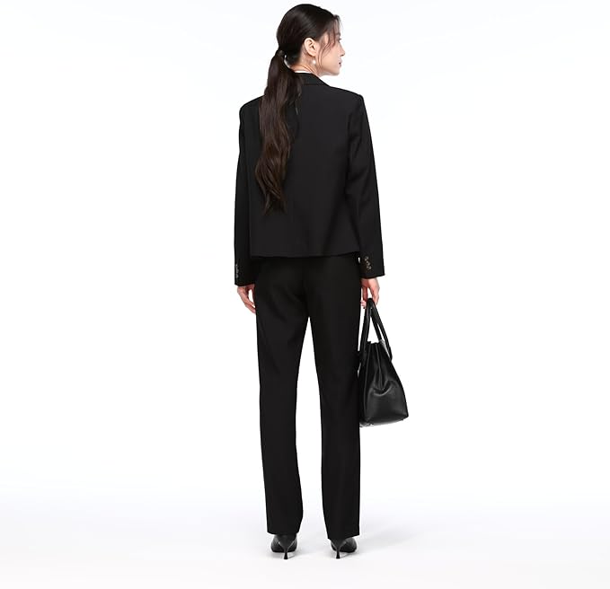リクルートスーツ レディースとしてパーディーバッグ合わせてエレガントな印象に仕上げてくれる。左右に便利なポケット付き。キレイめアイテムなのでオフィス服としても、ワイドすぎない絶妙なストレートシルエット。