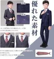 【商品構成】(5点セット):ジャケット+ネクタイ+ベスト+ズボン+白シャツ 着心地らくらく、かっこいい!やんちゃキッズも紳士に変身! 3カラーご選択!