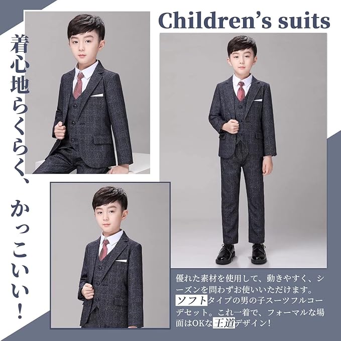 限定商品男の子 フォーマルスーツ 子供 スーツ ボーイズ チエック柄 キッズ 千鳥柄 5点セット 発表会 七五三 結婚式 かっこいい 入学式 卒業式 90~150