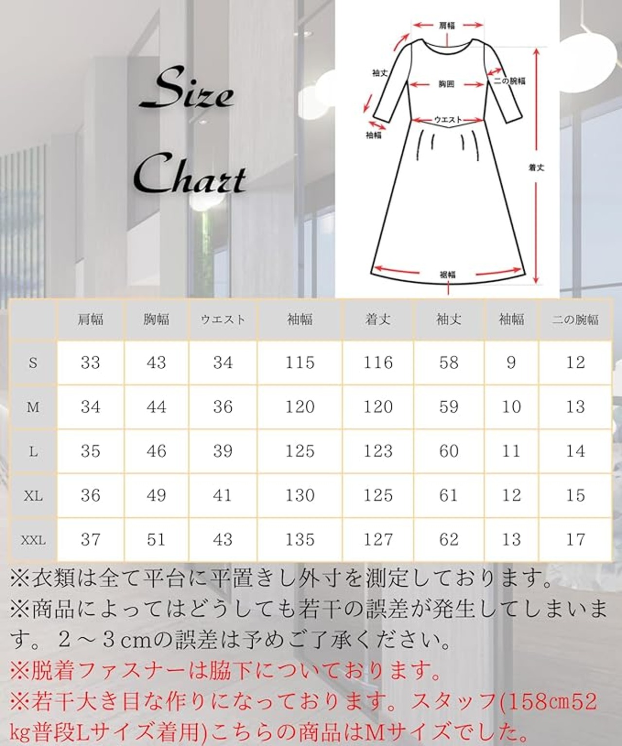 ※注意点※ 少し大きめな作りになっております。スタッフ30代女性158㎝52㎏でMサイズでジャストサイスでした。また背中ファスナーでは無く右の脇の下にファスナーがございます。脱着の際はお気をつけ下さい。
