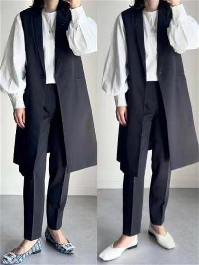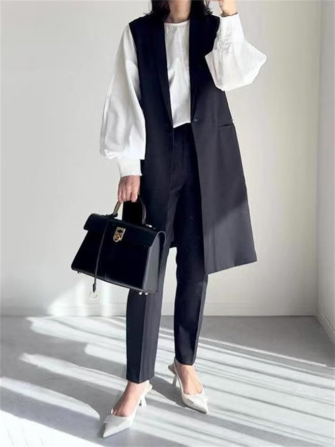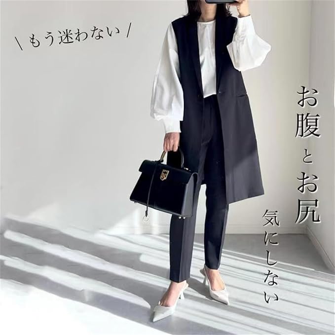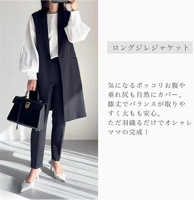 限定商品 レディース 2点セット ロングジレ+ガウチョパンツ セットアップ パンツスーツ 上下セット ジレセットアップ スーツ 中央ボタン vネック 袖なし 後ろスリット オフィス ビジネス おしゃれ OL ママ 通勤 発表会 入学式 卒業式