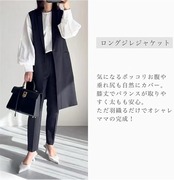 【合わせやすい】ロングジレジャケットがゆる感を出し、大人のトレントスタイル、気になる体型を綺麗にカバーできます。ロング丈のガウチョパンツが敢えて美脚効果バッグンです。エレガントで、おしゃれを楽しんで頂けます。