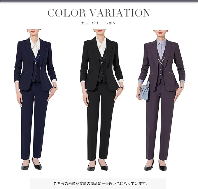 限定商品レディーススーツ 3点セット パンツ スーツ ベスト スリーピーススーツ 着痩せ 洗える 春秋冬 入学式卒業式 結婚式 ビジネス用 面接 5号-17号