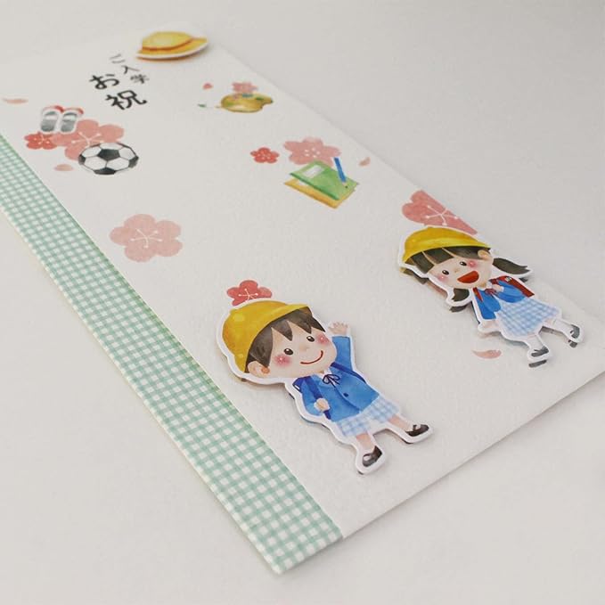 男女兼用で使えるご入学お祝金封。学校に関係する可愛く柔らかなものを飾りにしています。本体と飾りの間にスポンジを入れ、より立体的に仕上げています。裏面にワンポイントの柄が入った差し込み口付き 商品名:スズキ紙工 祝儀袋 ご入学お祝 2枚入 ス-6357
