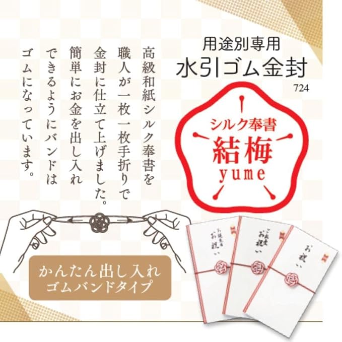 伊予結納センター 日本製 金封 慶事用 水引ゴム金封 シルク奉書 結梅 ご入学お祝い S064-07