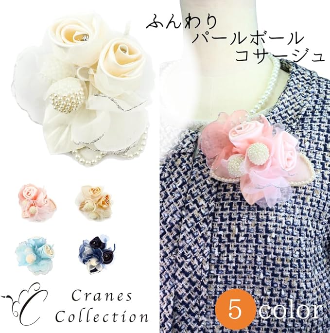 [クレインズコレクション] ふんわり パールボール コサージュ ブローチ ピン クリップ付 フォーマル 入学式 卒業式 結婚式 ハレの日の特別なシーン