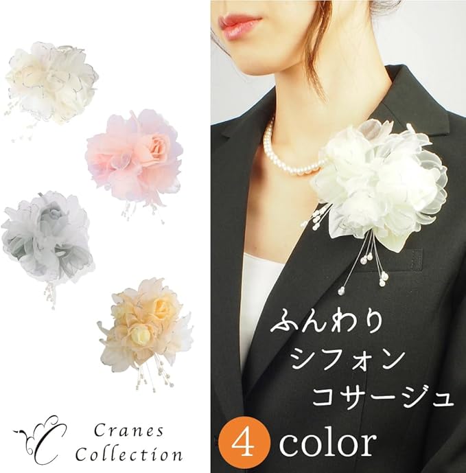 [クレインズコレクション] ふんわり シフォン 三つ花 コサージュ ブローチ ピン クリップ付 フォーマル 入学式 卒業式 結婚式 ハレの日の特別なシーンに