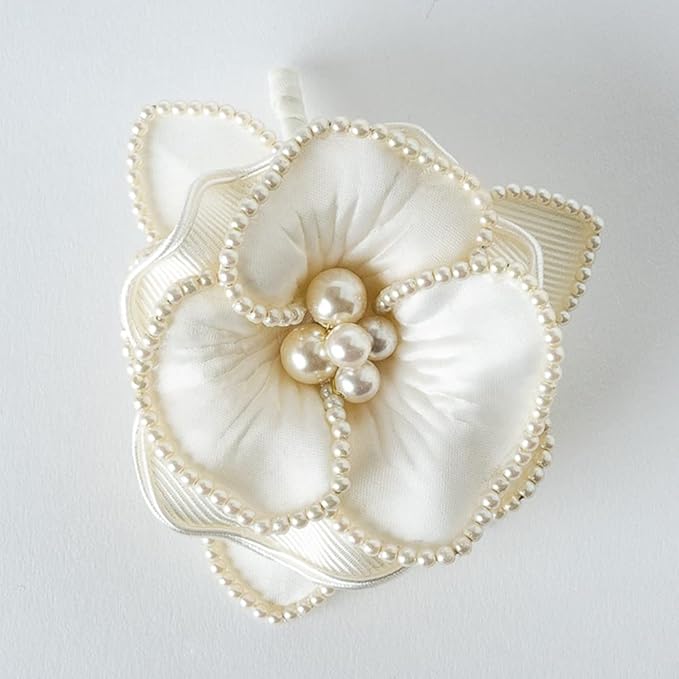パールで華やかに彩ったコンパクトでも存在感のあるコサージュです。