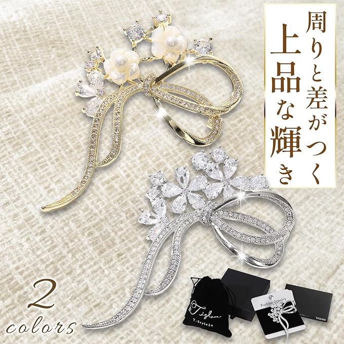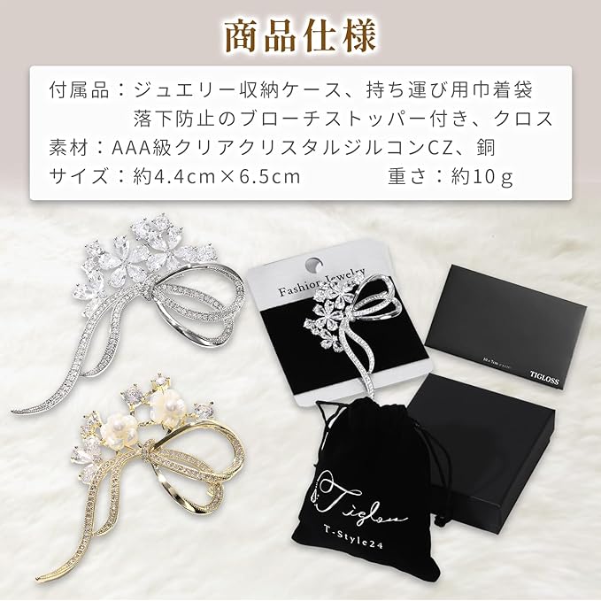 [ティグロス] TIGLOSS ブローチ ジルコン ジルコニア クリスタル 記念日 お祝い コサージュ セレモニー シルバー ゴールド フォーマル ジェケット スーツ ギフト 結婚式 お呼ばれ ドレス パーティー ピン おしゃれ 花 りぼん 専用BOX付
