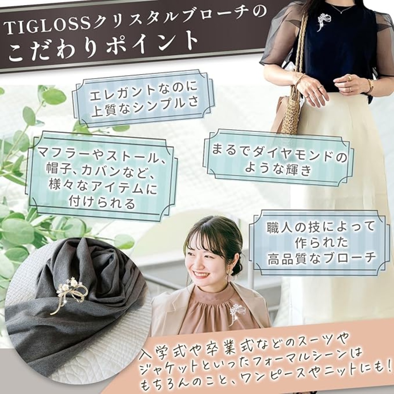 【様々なシーンのアクセントとして】イベントやフォーマルシーンはもちろんの事、入園式・入学式・卒園式・卒業式・成人式など、スーツやドレスといった様々な場面でお使い頂けます。流行やデザインに左右されず、年代問わずお使い頂けます。
