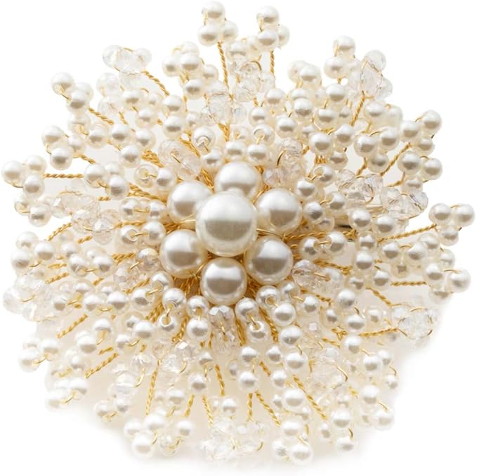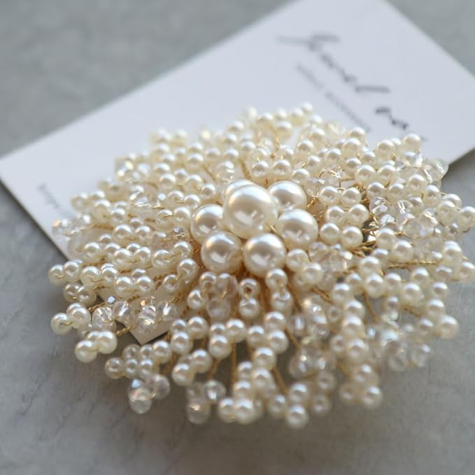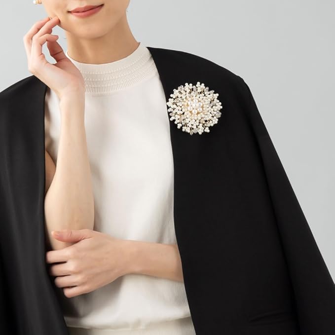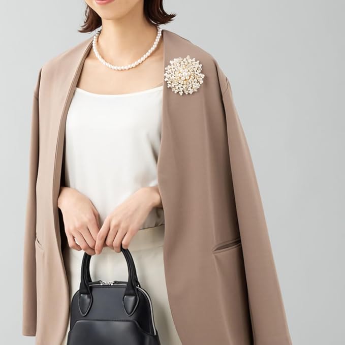 【ポイント】パールとビーズをふんだんに使ったお花の形のフラワーコサージュです。 艶やかなパールが高級感を演出し、エレガントで清楚なデザインなのでフォーマルなシーンだけでなくパーティにもおすすめ。 ピンとクリップ付なのでストールやバッグに付けて使うこともできるアイテムです。