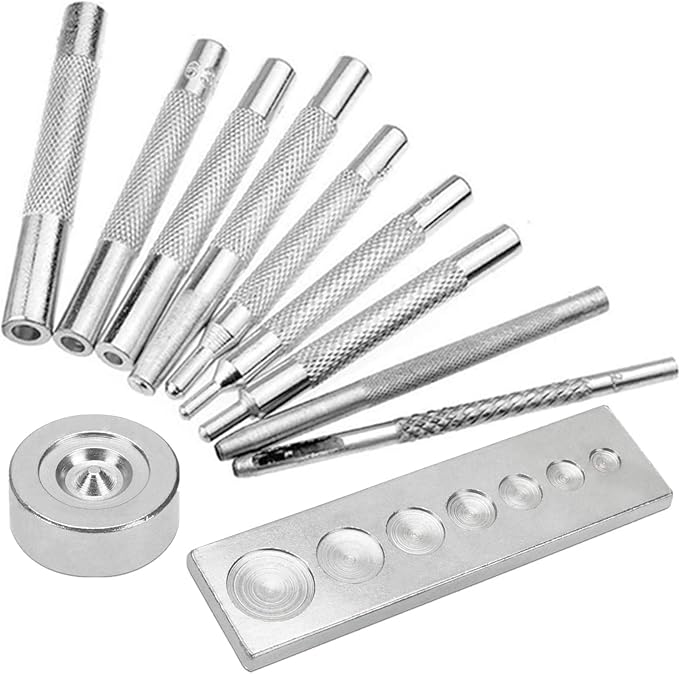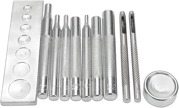 [Yヤクニタツ] レザークラフト ホック打ち具 11点セット ハトメ 万能打ち台 カシメ打ち 革細工 打ち具 道具