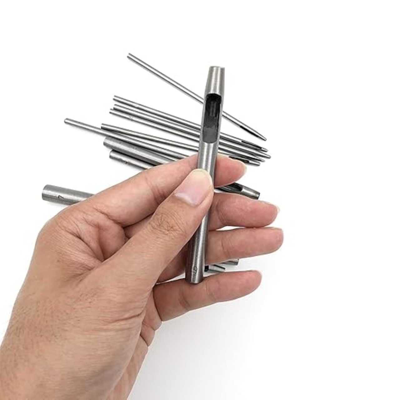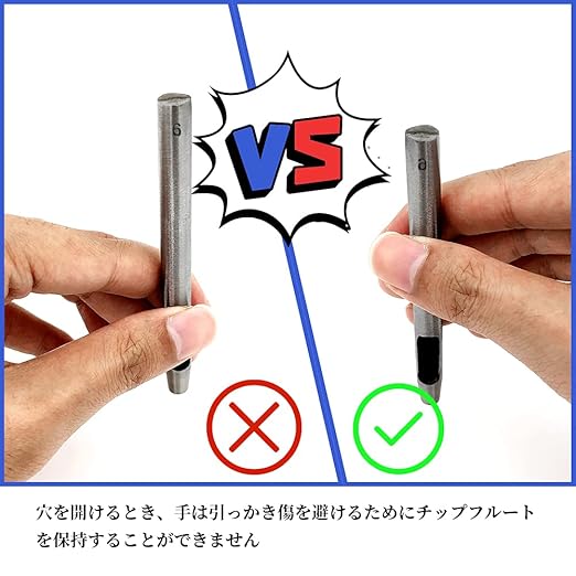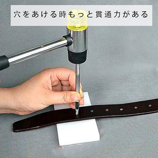 【材質】45#スチール製。ヘッドクエンチング熱処理により、硬さが強化されていて、ポンチ 穴あけをあける時に強い貫通力があります。穴あけ革が錆びにくいように、我々は穴あけの表面に防錆油を添加しました。長時間に使えにします。