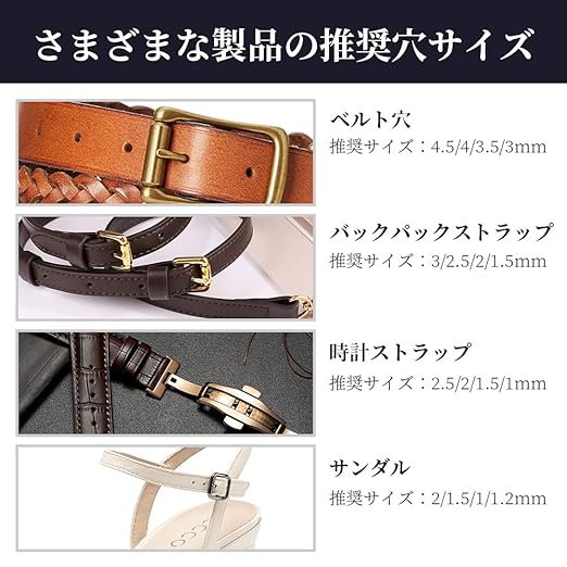 【使用範囲】: 穴は色々な大きさがあり、技術的に穴をあけるの際に大活躍の手芸ポンチ 工具です。例えば:腕時計,鞄、財布、布、紙、ベルトなどの穴あけ。