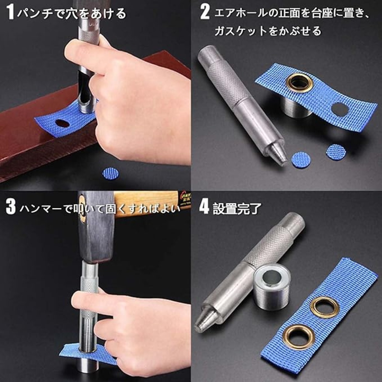 【取り付け簡単】パンチングツールでレザークラフトに穴を開け、ハンマーでグロメットを押し付けます。これは、クラフトに装飾を追加するために非常に適しています。