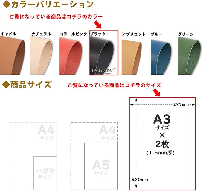 DY.Leather ヌメ革【 A3 2 ブラック 1.5mm 革質6 】 日本製 タンニンなめし レザークラフトパーツ 革 牛本革 生地 牛革 はぎれ 生成り 革手芸 革細工 初心者 漉き加工 天然皮革
